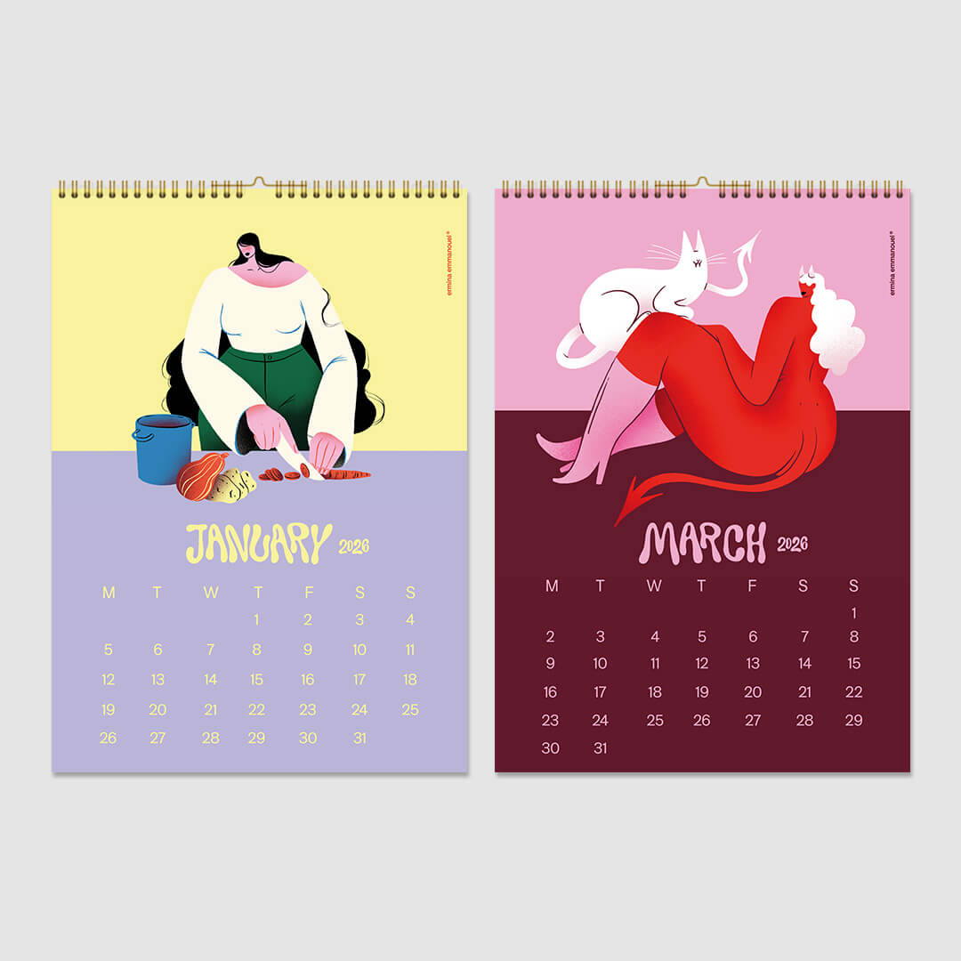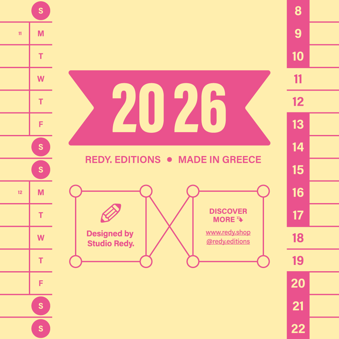 This 60×80 cm wall planner (two sheets of 60×40 cm) includes four limited art posters on the reverse side. Once the year is over, simply cut each sheet in half and reuse it as two 30×40 cm art prints. It’s a calendar that lives beyond 2026. Designed in our signature bold, playful style, it brings colour, clarity, and joy to your space all year long. Perfect for planning, decorating, and gifting.