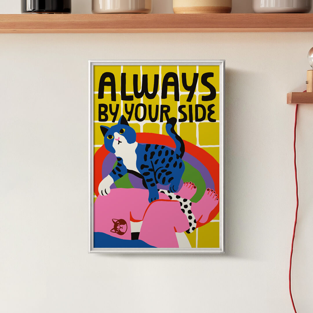Personal space? Never heard of it. Always By Your Side celebrates the loyal little shadow who follows you from the kitchen to the couch and, yes, even to the bathroom. Bright, bold, and gloriously clingy, just like your cat. A daily reminder that wherever you go, someone fluffy is already there. Pure A.C.A.B. energy: Always. Constantly. Attached.
