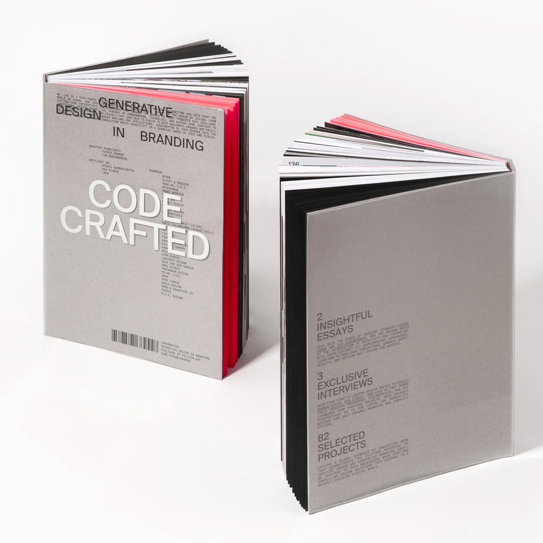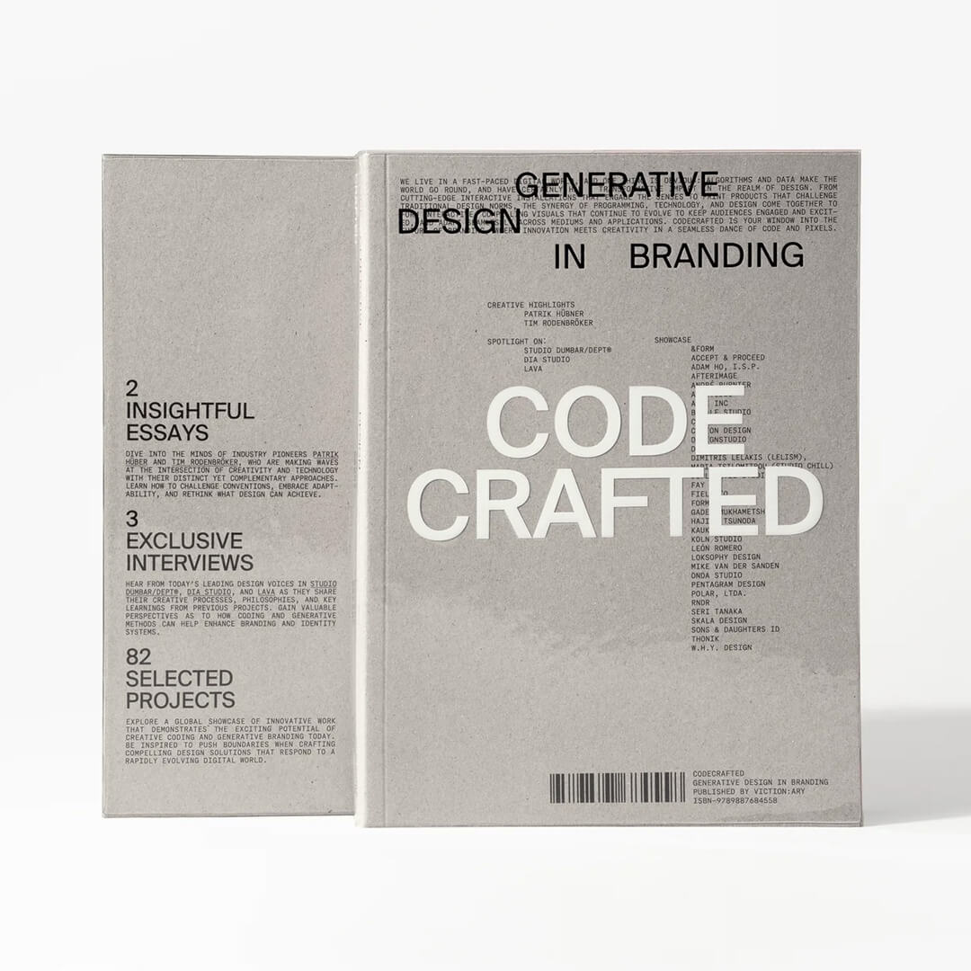 CodeCrafted – Generative Design in Branding. We live in a fast-paced digital world where algorithms and data are reshaping design. From interactive installations to boundary-pushing print work, the fusion of programming, technology, and design creates visuals that captivate, evolve, and adapt across mediums. CodeCrafted is your window into the future of branding, where code and creativity merge to build dynamic identities. This book features a rich showcase of brilliant generative design work, and insights from top studios like DIA, Studio Dumber_DEPT®, and LAVA. It also includes essays from generative design pioneer Patrik Hübner and coding expert Tim Rodenbröker, offering deep dives into the field’s creative and technical potential.