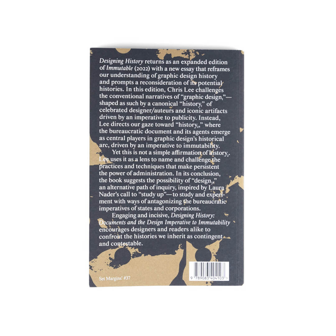 Documents and the Design Imperative to Immutability. Moving beyond the usual genres of form endemic to graphic design’s canonical history, Designing History proposes a design history that centers bureaucratic instruments like money, passports, certificates, property deeds, and more. Such documents produce identity, assign ownership, grant permission, and ascribe value. They stabilize claims, memory, and knowledge that would otherwise be vulnerable to contestation or obliteration. Despite their apparent banality, such documents are perhaps graphic design’s most profoundly consequential forms.