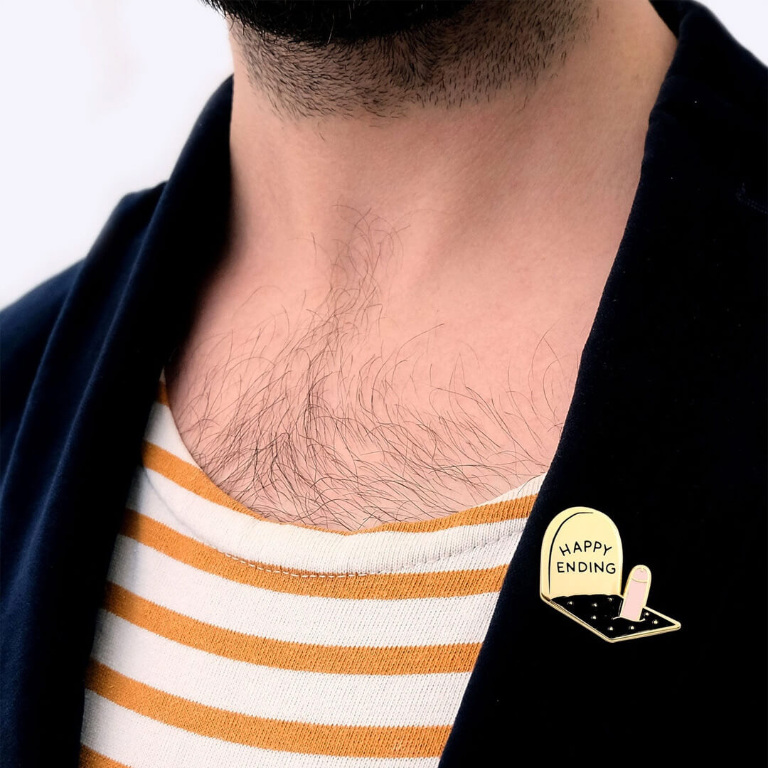 Happy Ending Pin, encapsulates our ethos perfectly. This lapel pin is a cheeky addition to your streetwear, symbolizing the comical and fascinatingly cute aspects of life that deserve to be celebrated. Enjoy the show with our gender-neutral products, designed to bring the elephant slap, bang, into the centre of the room.