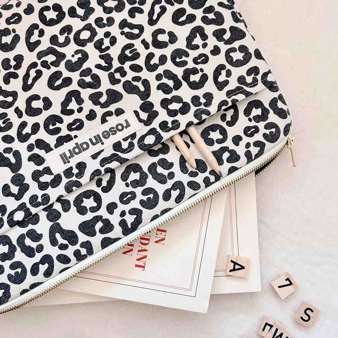 Padded to protect your laptop, our Octave laptop sleeve is perfect for all your projects, whether at work, on the road or at home. Its little plus: an external pocket for your documents, glasses, charger, etc. Leopard, zebra or stripes…the hardest part will be choosing your favorite print! Made in Portugal, our Octave laptop sleeve is made from cotton canvas, a durable and resistant material. Suitable for 13“ and 14” computers. We invite you to check the dimensions of your computer, as they may vary depending on the model and generation. And to ensure a good fit and protect your computer, it is best to leave a small margin inside the sleeve.