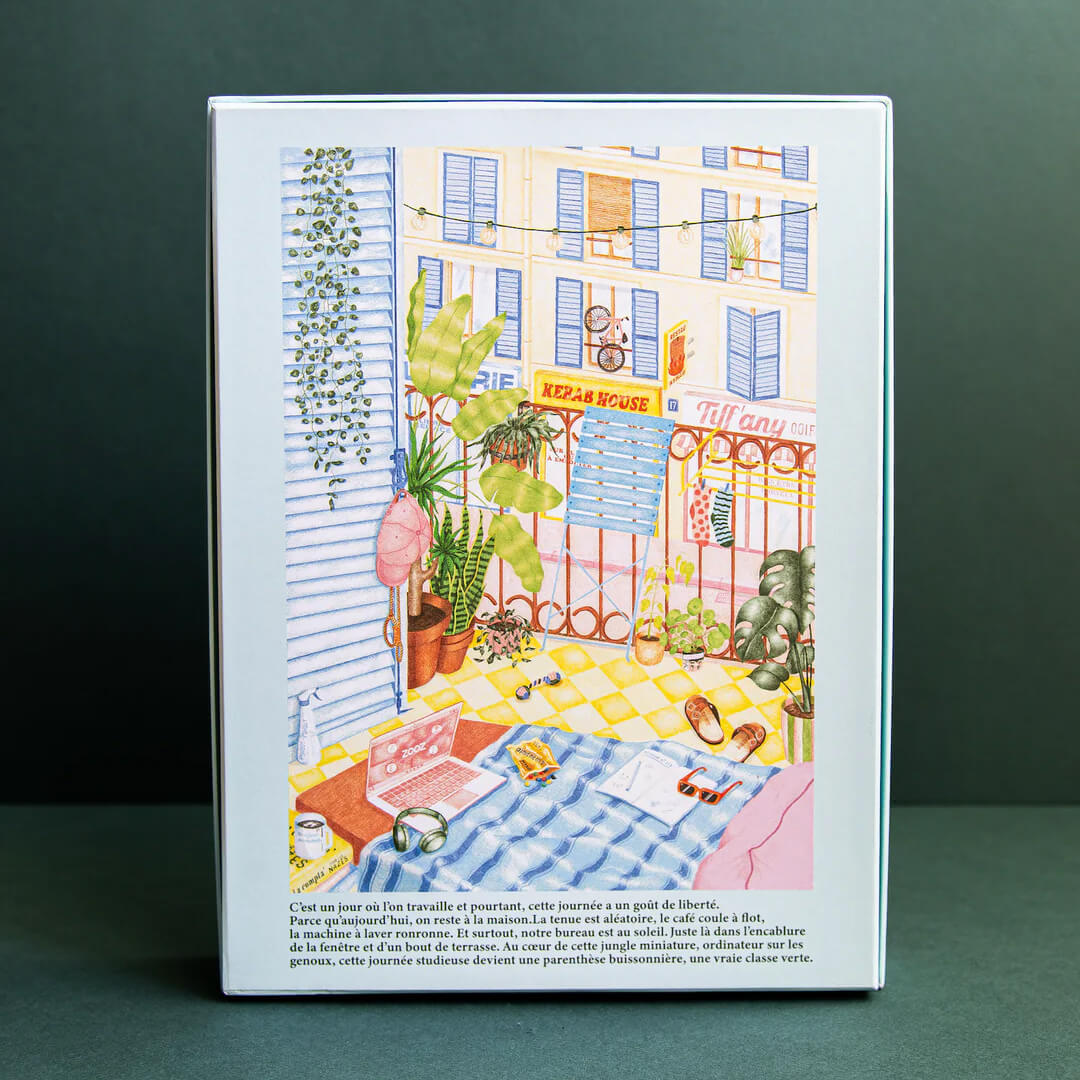Dive into the serene with the “La classe verte” 1000-piece puzzle – an eco-designed, French-made cardboard masterpiece (48 × 68.5 cm) that evokes a calm workspace by a sunny window, biscuit in hand, pet beside you.