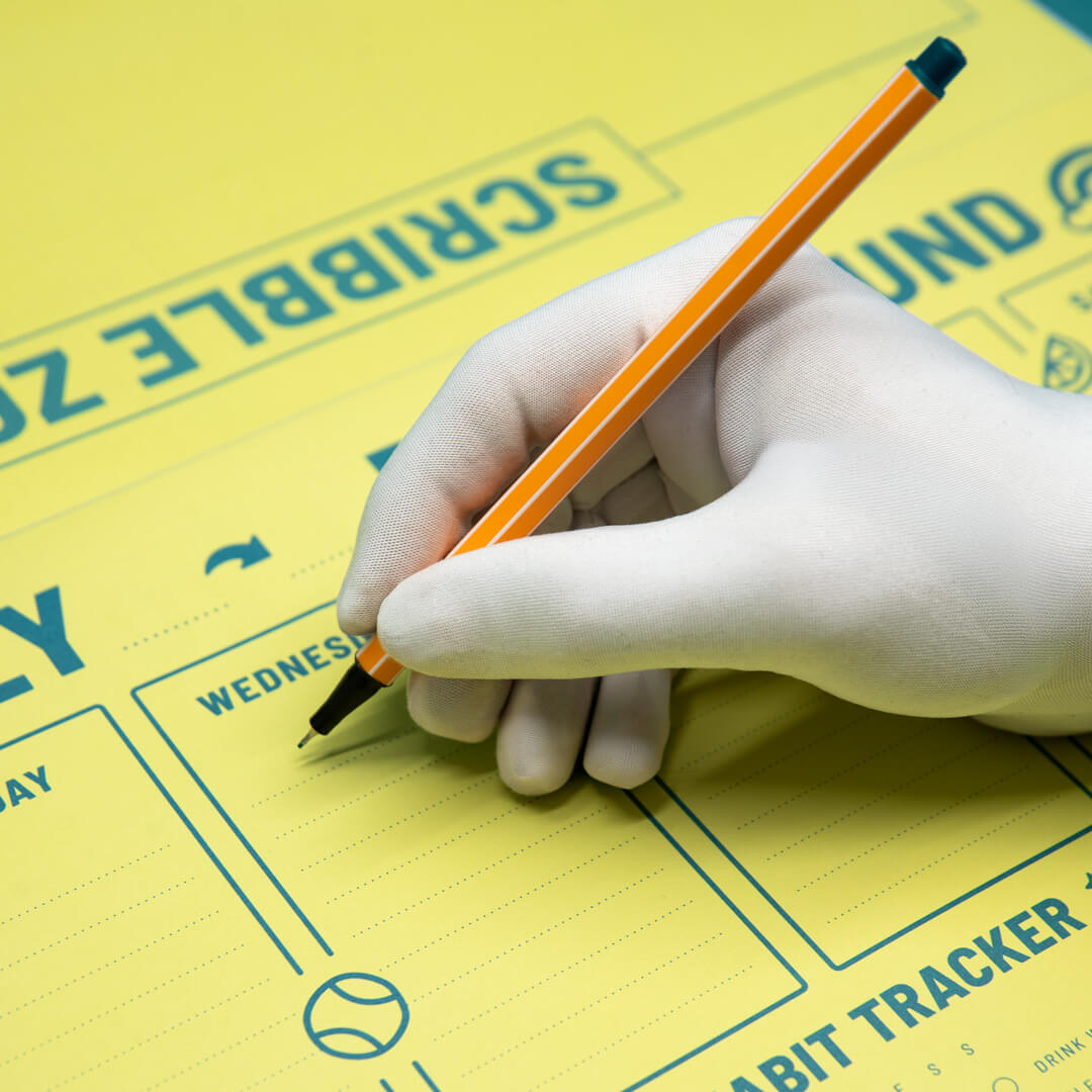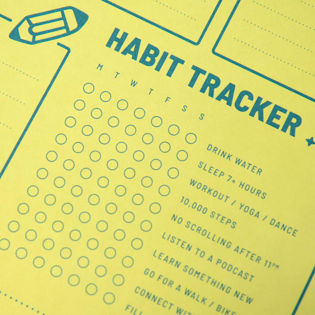 An A3 weekly planner for creative minds that live in motion. With 52 pages (one for every week of the year), it keeps your days organized and your thoughts moving. Includes sections for habits, meal planning, priorities, and space to scribble freely. With its soft-colored edge and bold layout, it’s perfect for your desk – right beside the keyboard, connecting you back to the physical world.